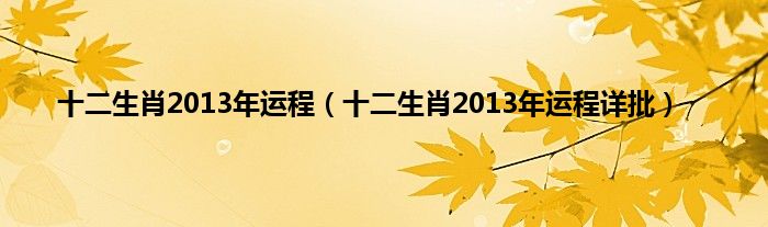 本文十二生肖2013年运程,十二生肖2013年运程详批到此分享完毕,希望对大家有所帮助。
