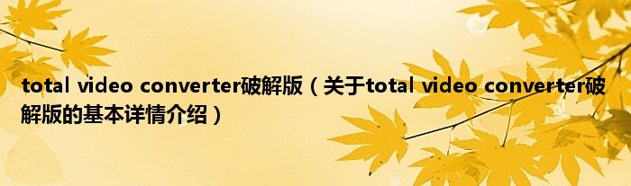 本文关于total video converter破解版的基本详情介绍就讲解完毕,希望对大家有所帮助。
