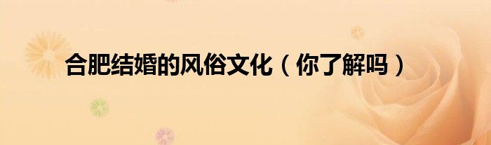 本文合肥结婚的风俗文化,你了解吗到此分享完毕,希望对大家有所帮助。