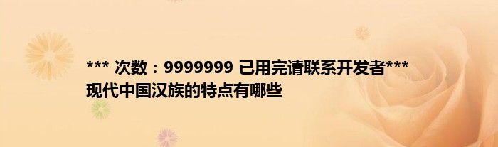 大家好,综合小编来为大家讲解下。*** 次数:9999999 已用完请联系开发者*** 现代中国汉族的特点有哪些这个很多人还不知道,现在让我们一起来看看吧!