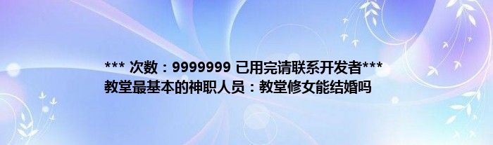 *** 次数:9999999 已用完请联系开发者*** 教堂最基本的神职人员:教堂修女能结婚吗