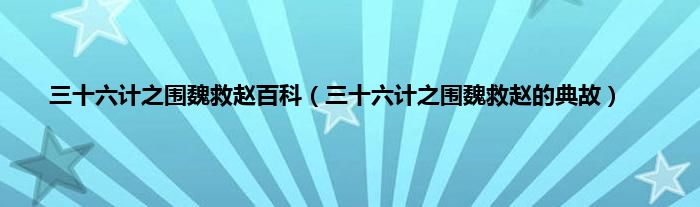 本文三十六计之围魏救赵百科,三十六计之围魏救赵的典故到此分享完毕,希望对大家有所帮助。