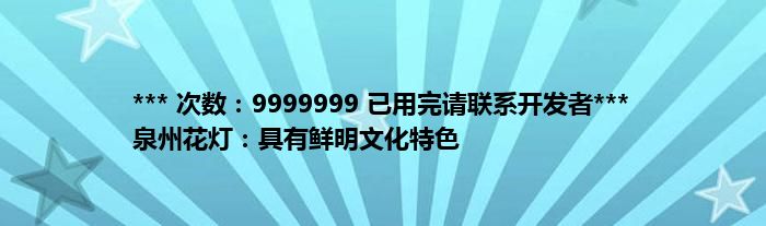 大家好,综合小编来为大家讲解下。*** 次数:9999999 已用完请联系开发者*** 泉州花灯:具有鲜明文化特色这个很多人还不知道,现在让我们一起来看看吧!