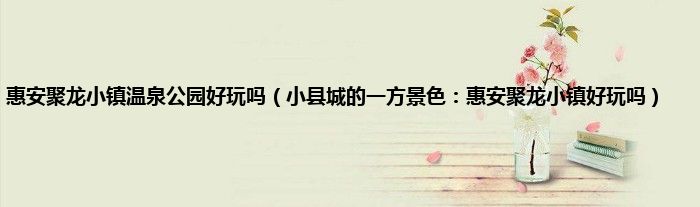 本文惠安聚龙小镇温泉公园好玩吗,小县城的一方景色:惠安聚龙小镇好玩吗到此分享完毕,希望对大家有所帮助。