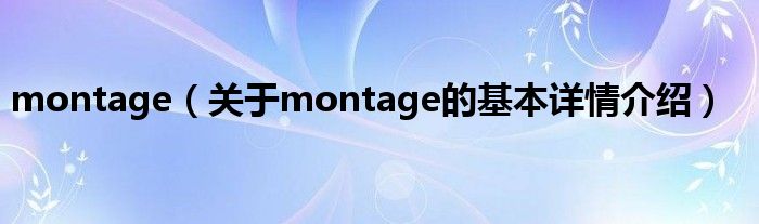 最佳答案大家好我是小蝌蚪,montage,关于montage的基本详情介绍很多人还不知道,那么现在让我们一起来看看吧!1、蒙太奇(法语:Montage)是音译的外来语,原为建筑学术语,意为构成、装配。2、经常用于三种艺术领域,可解释为有意涵的时空人为地拼贴剪辑手法。3、最早被延伸到电影艺术中,后来逐渐在视觉...