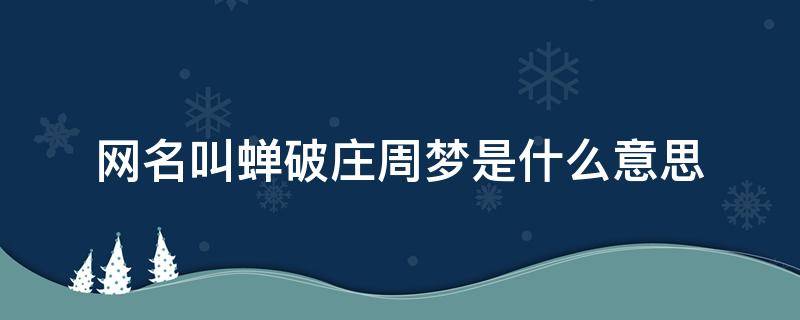 网名叫蝉破庄周梦意思是蝴蝶大得竟然把庄周的蝶梦给弹破,比喻虚幻的事物。网名指在网上使用的名字。由于网络是一个虚拟的世界,为了避免使用真实姓名带来的麻烦所以发明了网名。网名一般是指网友在网络世界里的一个虚拟名称。包含:论坛网名、qq网名、MSN网名、游戏网名等。qq网名则是网名中的一种。而大家最熟悉的就是腾讯qq的网名,聊天软件上对应的虚拟名称。它具有随意性、不稳定性和不真实性。