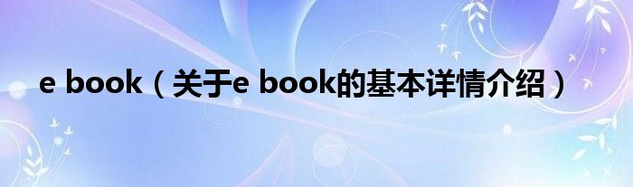 本文关于e book的基本详情介绍就讲解完毕,希望对大家有所帮助。