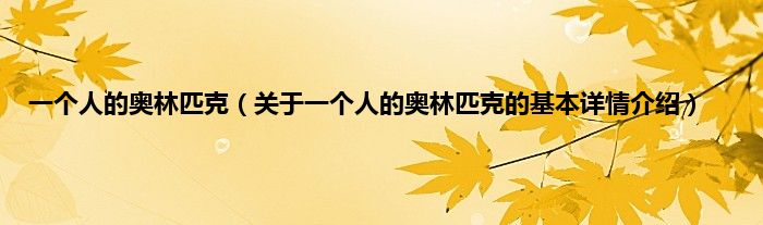 本文关于一个人的奥林匹克的基本详情介绍就讲解完毕,希望对大家有所帮助。