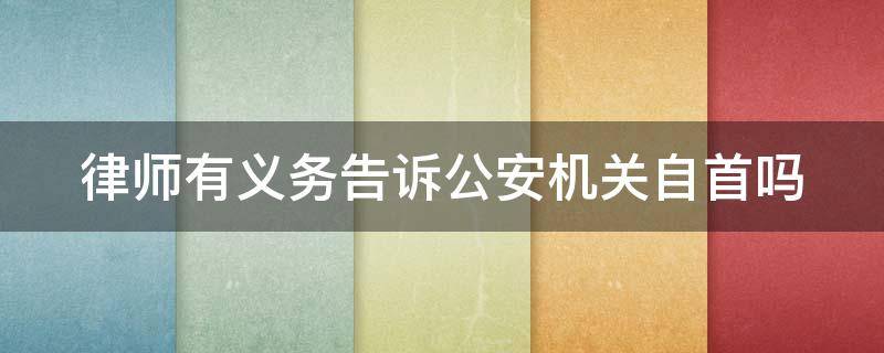 律师有义务告诉公安机关自首,侦查阶段律师有犯罪嫌疑人自首的情节,应当告知公安局。犯罪嫌疑人在侦查阶段有权委托律师作为辩护人,在执业活动中知悉委托人或者其他人,准备或者正在实施相关行为时,应当及时告知司法机关。律师是指依法取得律师执业证书,接受委托或指定,为当事人提供法律服务的执业人员。2021年8月20日,十三届全国人大常委会第三十次会议表决通过《中华人民共和国法律援助法》,基层法律服务所负有依法提供法律援助的义务。