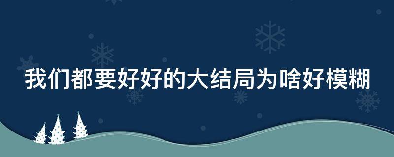 我们都要好好的大结局好模糊是因为艾丽莎和向前的结局是开放式的,结局中两个人在海边再次相遇,两人相视一笑,整个故事就结束了。虽然向前是二婚,但是他和艾丽莎在一起还是众望所归的,他们的相遇给观众们留下了更多想象的空间,所以说结局是模糊的。《我们都要好好的》是由刘雪松执导,刘涛、杨烁、金晨、刘端端领衔主演的都市情感剧。该剧讲述了寻找在成为家庭主妇后,与金融天才丈夫向前差距拉大,患上忧郁症,之后涅槃重生,找寻到全新自我的故事。