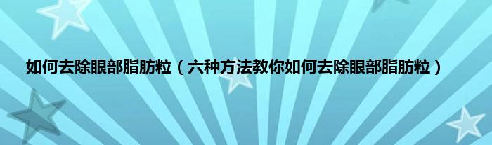 欢迎观看本篇文章,小升来为大家解答以上问题。如何去除眼部脂肪粒,六种方法教你如何去除眼部脂肪粒很多人还不知道,现在让我们一起来看看吧!