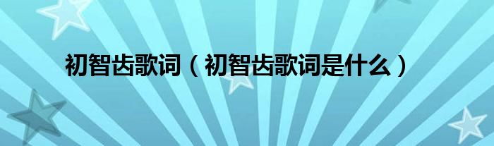 欢迎观看本篇文章,小升来为大家解答以上问题。初智齿歌词,初智齿歌词是什么很多人还不知道,现在让我们一起来看看吧!