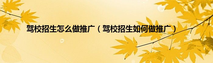 欢迎观看本篇文章,小升来为大家解答以上问题。驾校招生怎么做推广,驾校招生如何做推广很多人还不知道,现在让我们一起来看看吧!