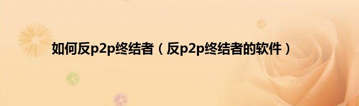 以上就是【如何反p2p终结者,反p2p终结者的软件】相关内容。