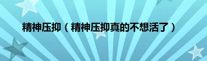 大家好,小问来为大家解答以上问题。精神压抑,精神压抑真的不想活了这个很多人还不知道,现在让我们一起来看看吧!