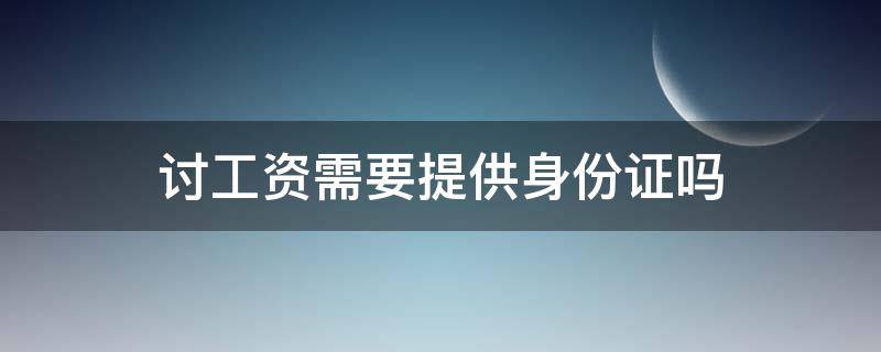 讨工资需要提供身份证,还需要工资支付凭证或记录或职工工资发放花名册;缴纳各项社会保险费的记录;用人单位向劳动者发放的工作证;劳动者填写的用人单位招工招聘登记表;报名表等招用记录、考勤记录。身份证一般指中华人民共和国居民身份证,在1984年前的名称写作身份证。1984年4月6日国务院发布《中华人民共和国居民身份证试行条例》,并且开始颁发第一代居民身份证。2003年6月28日,第十届全国人大常委会第3次会议通过《中华人民共和国居民身份证法》,2003年6月28日经主席令第4号公布。