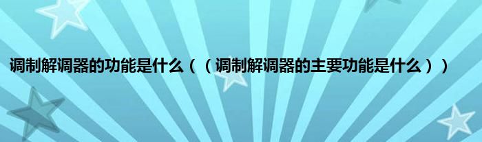 大家好,综合小编来为大家讲解下调制解调器的功能是什么,,调制解调器的主要功能是什么这个很多人还不知道,现在让我们一起来看看吧!