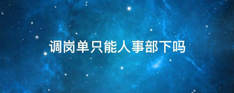 调岗单只能人事部下,可以个人写申请,交给部门主管,部门主管在同意后交给人事部经理,人事部经过审核同意后即可签发调岗令。人事部是一个企业或者团体的人力资源和企业公共事务的管理部门。主要职责有负责公司人力资源工作的规划,建立、执行招聘、培训、考勤、劳动纪律等人事程序或规章制度;负责制定和完善公司岗位编制,协调公司各部门有效的开发和利用人力,满足公司的经营管理需要;根据现有的编制及业务发展需求协调、统计各部门的招聘需求。