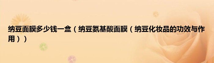 大家好,综合小编来为大家讲解下纳豆面膜多少钱一盒,纳豆氨基酸面膜,纳豆化妆品的功效与作用这个很多人还不知道,现在让我们一起来看看吧!