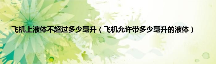 大家好,综合小编来为大家讲解下飞机上液体不超过多少毫升,飞机允许带多少毫升的液体这个很多人还不知道,现在让我们一起来看看吧!