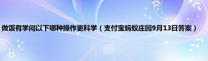 大家好,综合小编来为大家讲解下做饭有学问以下哪种操作更科学,支付宝蚂蚁庄园9月13日答案这个很多人还不知道,现在让我们一起来看看吧!