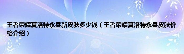 大家好,综合小编来为大家讲解下王者荣耀夏洛特永昼新皮肤多少钱,王者荣耀夏洛特永昼皮肤价格介绍这个很多人还不知道,现在让我们一起来看看吧!