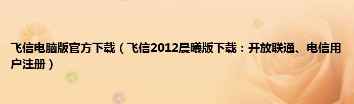 大家好,综合小编来为大家讲解下飞信电脑版官方下载,飞信2012晨曦版下载:开放联通、电信用户注册这个很多人还不知道,现在让我们一起来看看吧!