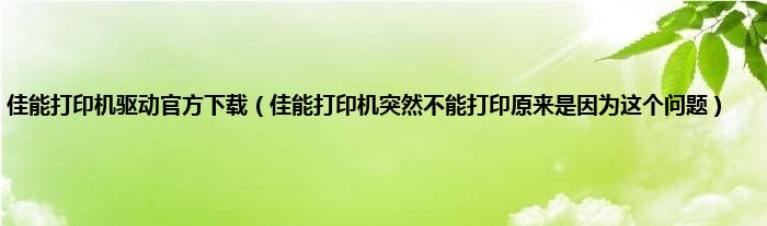 大家好,综合小编来为大家讲解下佳能打印机驱动官方下载,佳能打印机突然不能打印原来是因为这个问题这个很多人还不知道,现在让我们一起来看看吧!