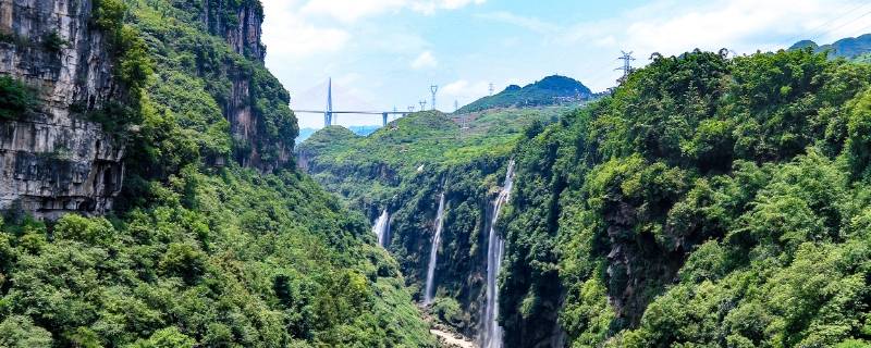 马岭河峡谷集雄、奇、险、秀为一体,谷宽50—150米、谷深120-280米。马岭河峡谷是一条在造山运动中剖削深切的大裂水地缝,谷内群瀑飞流、翠竹倒挂、溶洞相连,两岸古树名木点缀其间,千姿百态。