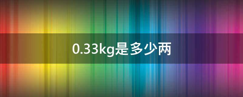 0.33kg是6.6两。因为1kg等于20两,所以0.33kg等于6.6两。公斤一般指千克。千克(符号kg)是国际单位制中度量质量的基本单位,千克也是日常生活中最常使用的基本单位之一。一千克几乎与一升的水等重,是唯一一个有国际单位制词头的基本单位。2018年11月16日,第26届国际计量大会通过修订国际单位制决议,正式更新包括国际标准质量单位千克的定义。新国际单位体系于2019年5月20日世界计量日起正式生效。