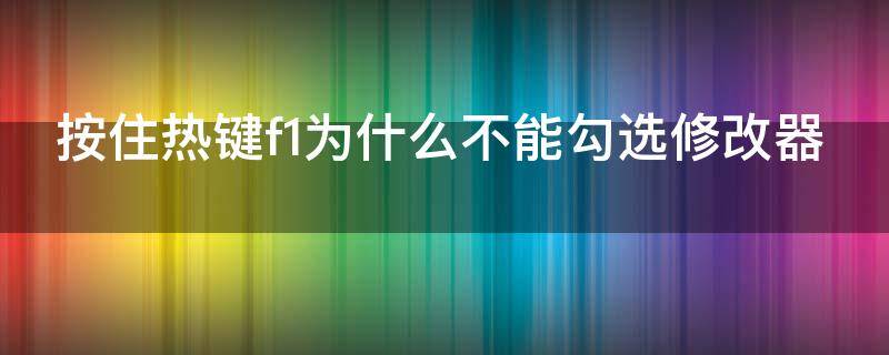 最佳答案按住热键f1不能勾选修改器是因为所用的修改器不支持你的游戏版本。FPE是最经典的修改器,FPE的特点是有进度条可以看到搜索进度,搜索过程中不会出现假死,功能丰富。FPE2000作为过去最常用的修改器,其搜索能力是最大的原因。其他修改器有可能出现找不到地址的情况,但是FPE找到的地址一定是最全的...