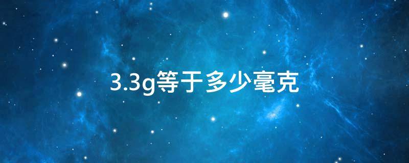 3.3g等于3300毫克,因为1克=1000毫克,所以3.3克*1000=3300毫克。单位换算,指同一性质的不同单位之间的数值换算。常用的单位换算有长度单位换算、重量单位换算、压力单位换算、面积单位换算、电容单位换算、体积单位换算、温度单位换算等。