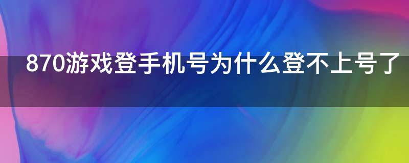 870游戏登手机号为什么登不上号了