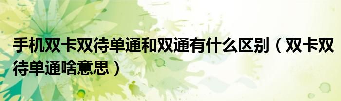 关于手机双卡双待单通和双通有什么区别,双卡双待单通啥意思这个很多人还不知道,今天菲菲来为大家解答以上的问题,现在让我们一起来看看吧!