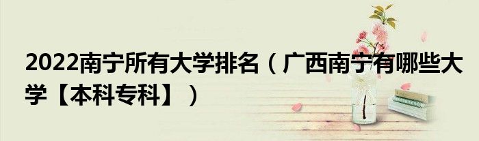 最佳答案大家好,乐儿来为大家解答以下问题,2022南宁所有大学排名,广西南宁有哪些大学【本科专科】很多人还不知道,现在让我们一起来看看吧!一、2022南宁本科大学名单1、学院本文到此结束,希望对你有帮助。