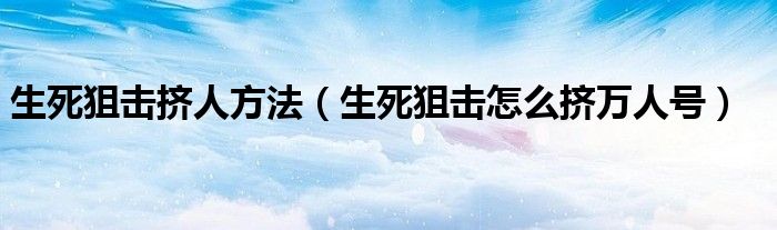 关于生死狙击挤人方法,生死狙击怎么挤万人号这个很多人还不知道,今天菲菲来为大家解答以上的问题,现在让我们一起来看看吧!