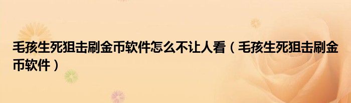 关于毛孩生死狙击刷金币软件怎么不让人看,毛孩生死狙击刷金币软件这个很多人还不知道,今天菲菲来为大家解答以上的问题,现在让我们一起来看看吧!
