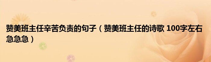 关于赞美班主任辛苦负责的句子,赞美班主任的诗歌 100字左右 急急急这个很多人还不知道,今天菲菲来为大家解答以上的问题,现在让我们一起来看看吧!