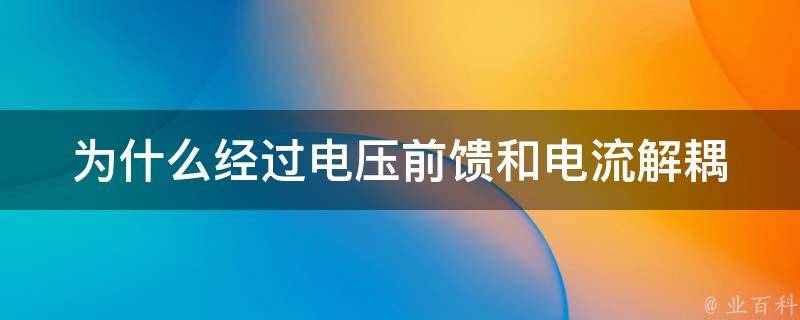 最佳答案经过电压前馈和电流解耦可以提高电路的性能和稳定性。电压前馈是一种将输出电压或电流信号反馈到电路中的技术。它可以通过比较输出信号与期望信号,调节电路的增益或响应特性,以使输出更接近期望的状态。这可以提高电路的线性度、稳定性和抗干扰能力。电流解耦是通过使用合适的电流传递路径,将输...