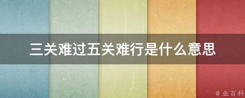 三关难过五关难行的意思是克服了三个困难并不容易,更难的是能够克服五个困难。它形象地描述了面临困境时需要克服和战胜多个障碍才能取得成功。这句成语常用于形容事情的困难程度或者个人经历中的艰难阶段。它也寓意着在面对挑战时,需要坚持不懈、勇往直前,并经历多个阶段的奋斗和努力才能达到目标。