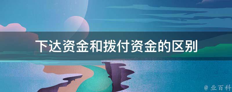 1、定义和含义:下达资金是上级机构或财务部门向下级机构或项目控制单位通知或下达资金额度的行为。拨付资金是财务部门或授权机构实际将资金款项支付给下级机构或项目控制单位的行为。