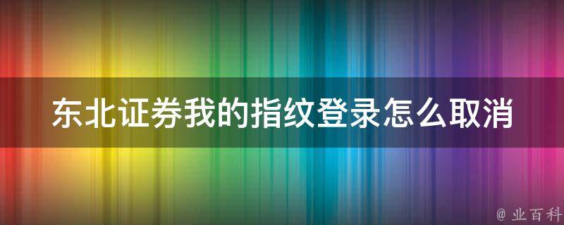 最佳答案1、登录东北证券的官方网站或移动应用程序。2、寻找设置或账户管理等相关选项。一般在个人资料或安全设置等部分。3、在设置或安全选项中,查找与指纹登录相关的设置选项。4、找到指纹登录选项后,可能会有一个取消或关闭指纹登录的按钮或开关。5、点击取消或关闭按钮,按照系统提示完成取消指纹登录...