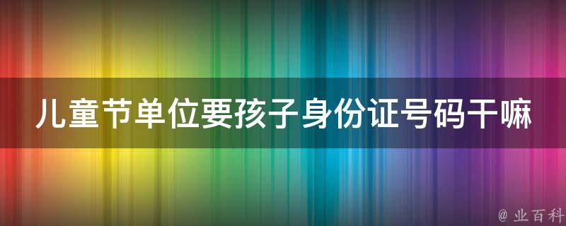 2、年龄验证:在某些情况下,单位可能要求提供儿童的身份证号码以验证其年龄是否符合相关要求,例如购票、参观限制年龄的场所等。