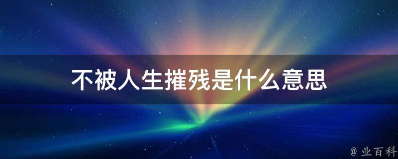 不被人生摧残的意思是不受人生中的伤害、痛苦或困难所影响。这个表达强调了对抗生活中的负面影响、坚持保持积极态度和抵御困境的意愿。它传达了一种希望能够克服逆境、保持强大和保护自己免受人生中的伤害的情感。需要注意的是,人生中遇到各种挑战和困难是不可避免的,而不被人生摧残是一种理想化的表达方式,强调对抗困境的意愿,而不是真正避免或消除所有困难。