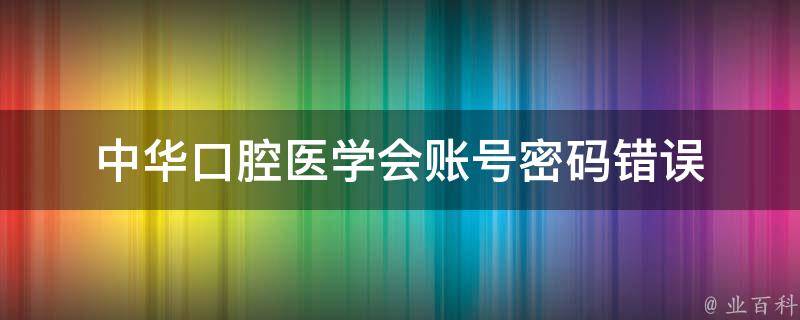 中华口腔医学会账号密码错误可能是因为输入错误,仔细检查已输入的账号和密码,注意区分大小写和任何特殊字符。如果忘记了密码,尝试使用忘记密码或重置密码选项来重设密码。根据中华口腔医学会的密码重置流程,按照相应的步骤进行操作。