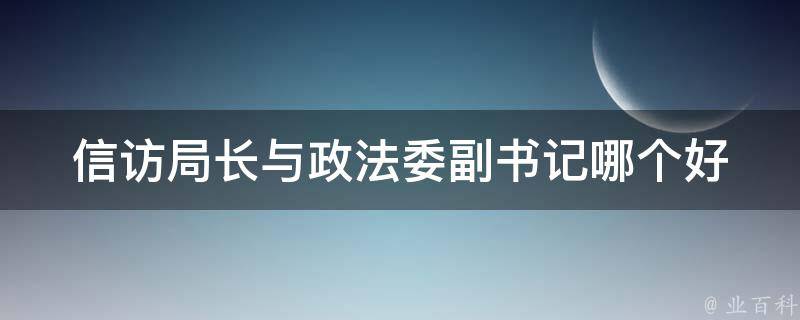 信访局长与政法委副书记都好。信访局长和政法委副书记是不同的职位,担任这两个职位会涉及到不同的职责和工作内容。信访局长负责处理公众的信访事务,维护社会的稳定和公平正义。他们需要具备沟通能力、协调能力和解决问题的能力,能够处理复杂的信访案件,保障社会稳定。