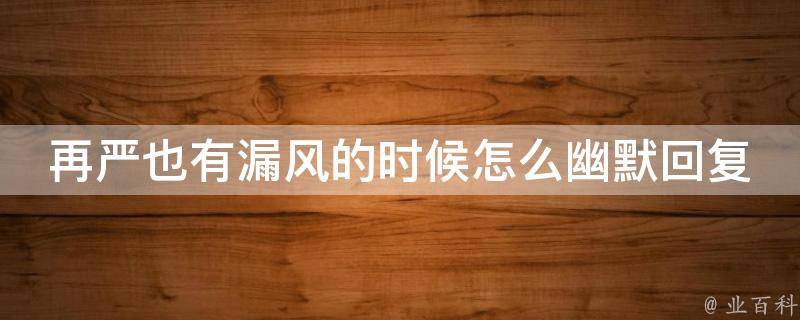最佳答案1、看来连封条都被我这特别版漏风了,我得请个封条师傅上门修补一下。2、这是我给世界上的整体通风作出的贡献,让大家都能感受到一点新鲜空气,你觉得如何。3、漏风?那是给房间里的害虫提供逃生通道,既关心环境又人道主义啊。4、世界上没有完美的东西,就像我吹过的生日蜡烛一样,总是会漏一点风...