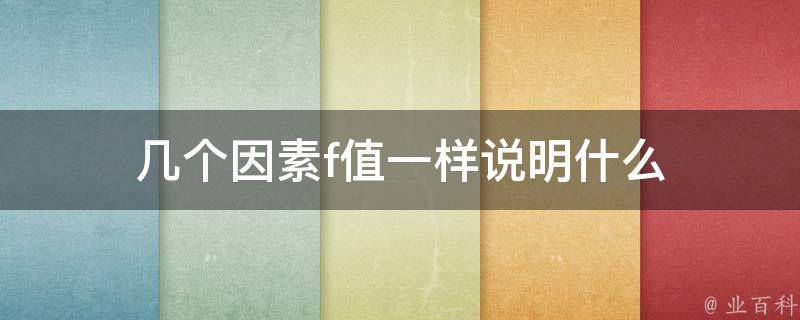 最佳答案当几个因素的f值(F-value)相同时,这可能表示这些因素在样本中对因变量的影响力相似。在统计分析中,f值用于衡量不同因素对于因变量的解释程度或显著性。如果多个因素的f值接近或相等,那么它们可能在解释因变量方面具有相似的重要性或效果。
