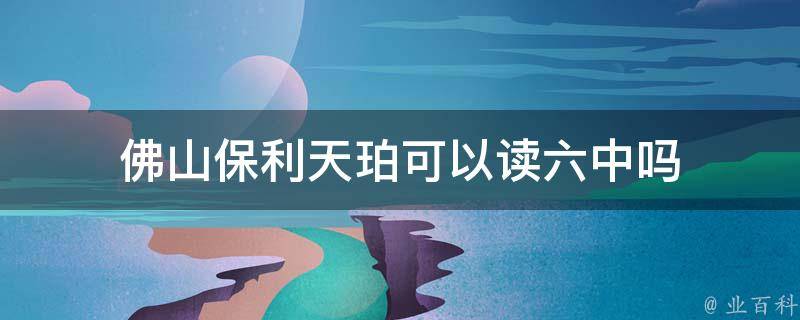 最佳答案佛山保利天珀可以读六中,九小、十三小、怡东小学、城北中学、佛山六中(初中)等都在保利天珀3公里内。佛山保利时代天珀集聚城市核心优势打造,根据佛山强中心战略,北门户将打造成为城市最具魅力的活力展厅、立体公园都市,引领城市发展方向。