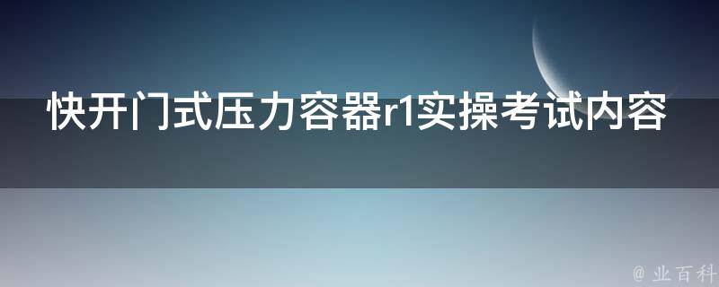 快开门式压力容器R1实操考试内容包括:停止向容器内输入气体或其他物料;安全泄放容器内气体或其他物料;将容器内压力排至大气压力。快开门式压力容器操作人员(R1)考试分为理论知识和实际操作技能考试。理论考试采用计算机考试;实际操作技能考试采用现场实际操作或在模拟机上操作。